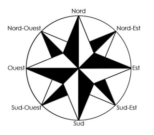 - Les points cardinaux. Ils permettent de situer les espaces les uns par rapport aux autres