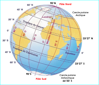 - Les lignes imaginaires comme l'équateur, les tropiques, les cercles polaires mais aussi les pôles.