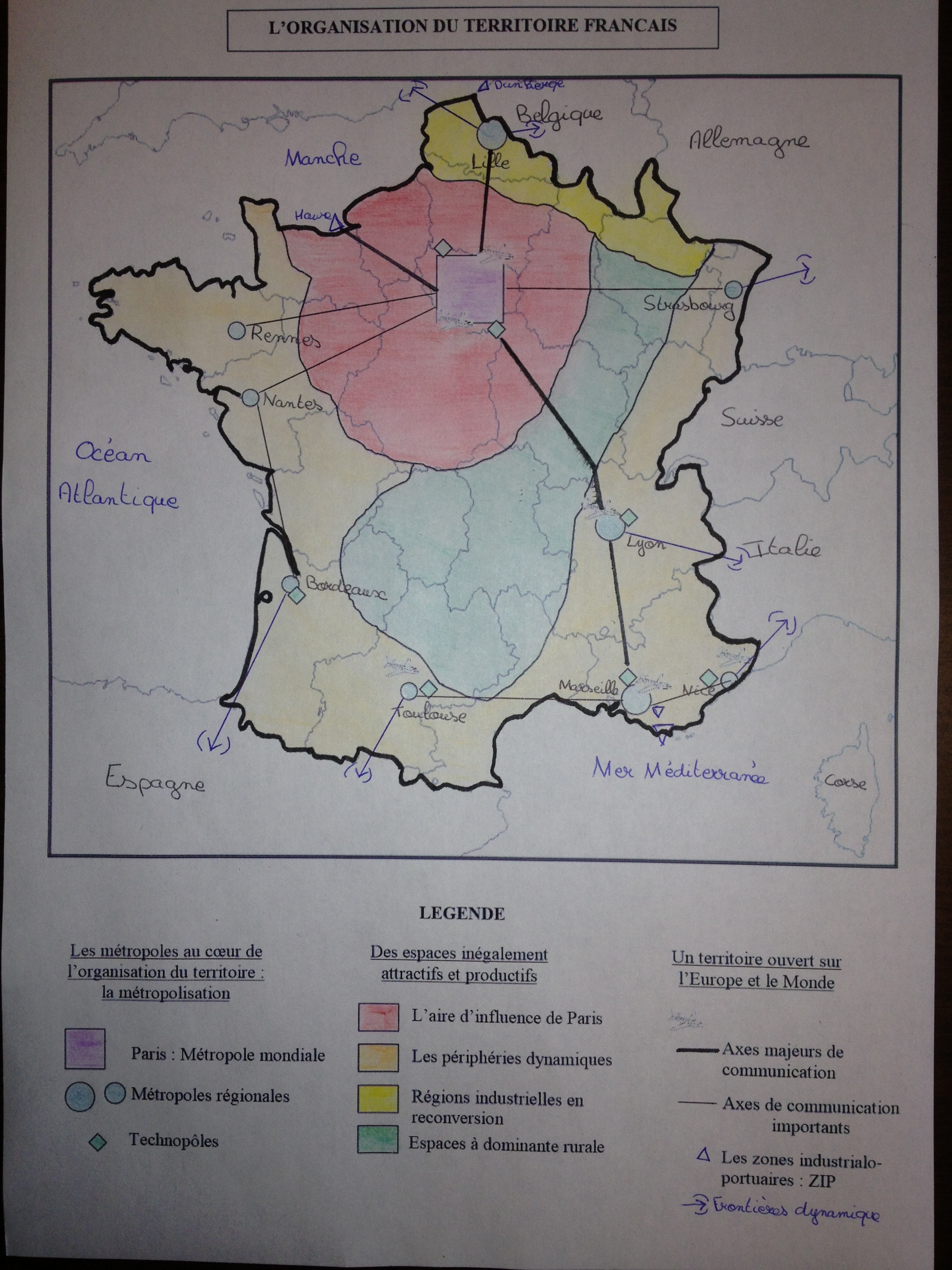 Voir croquis organisation du territoire français (attention aux petites erreurs comme le Luxembourg!)